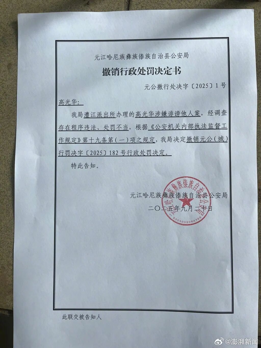 元江县公安局所作的元公(城)行罚决字〔2025〕182号行政处罚决定书显示,高光华在未经查证李某某被免职真实原因情况下,捏造事实称李某某因当地一涉及暑假假期学生安全的重大舆情事项被免职,致使他人的人格权和名誉权遭到损害。